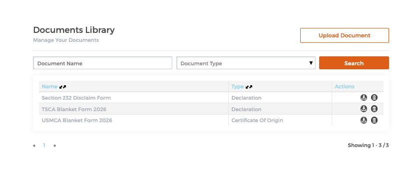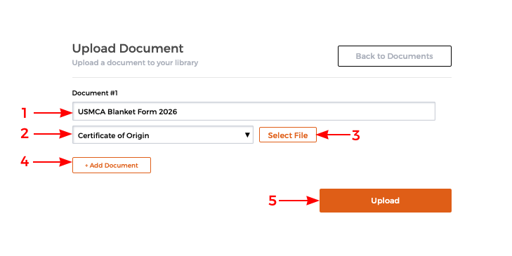 • 2: Select the type of document you are uploading (e.g., Certification of Origin, Declaration, etc.)