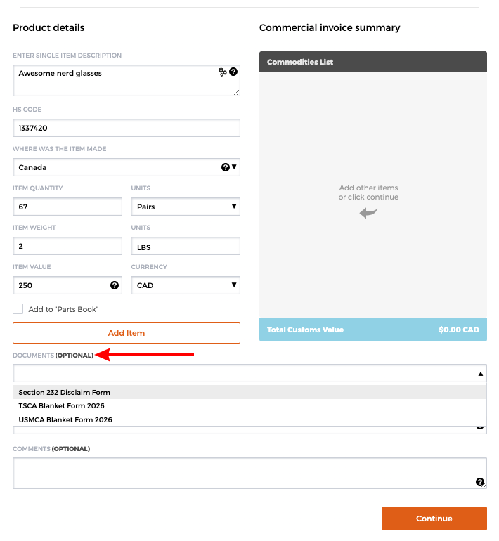 Adding Documents to your Shipments